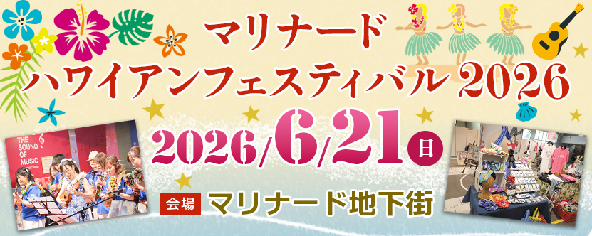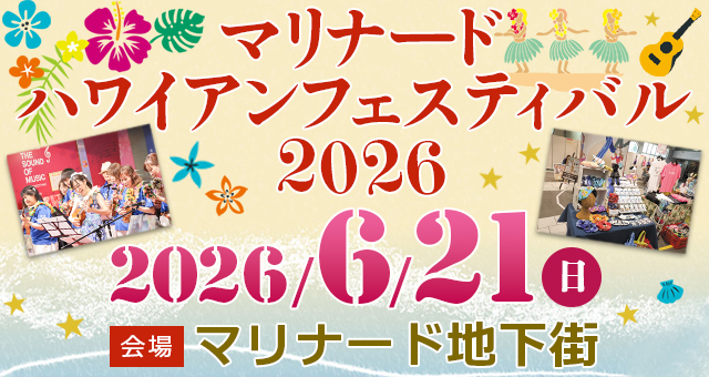 2026年6月21日(日) マリナード地下街において第2回となります「マリナードハワイアンフェスティバル2026」を開催いたします。